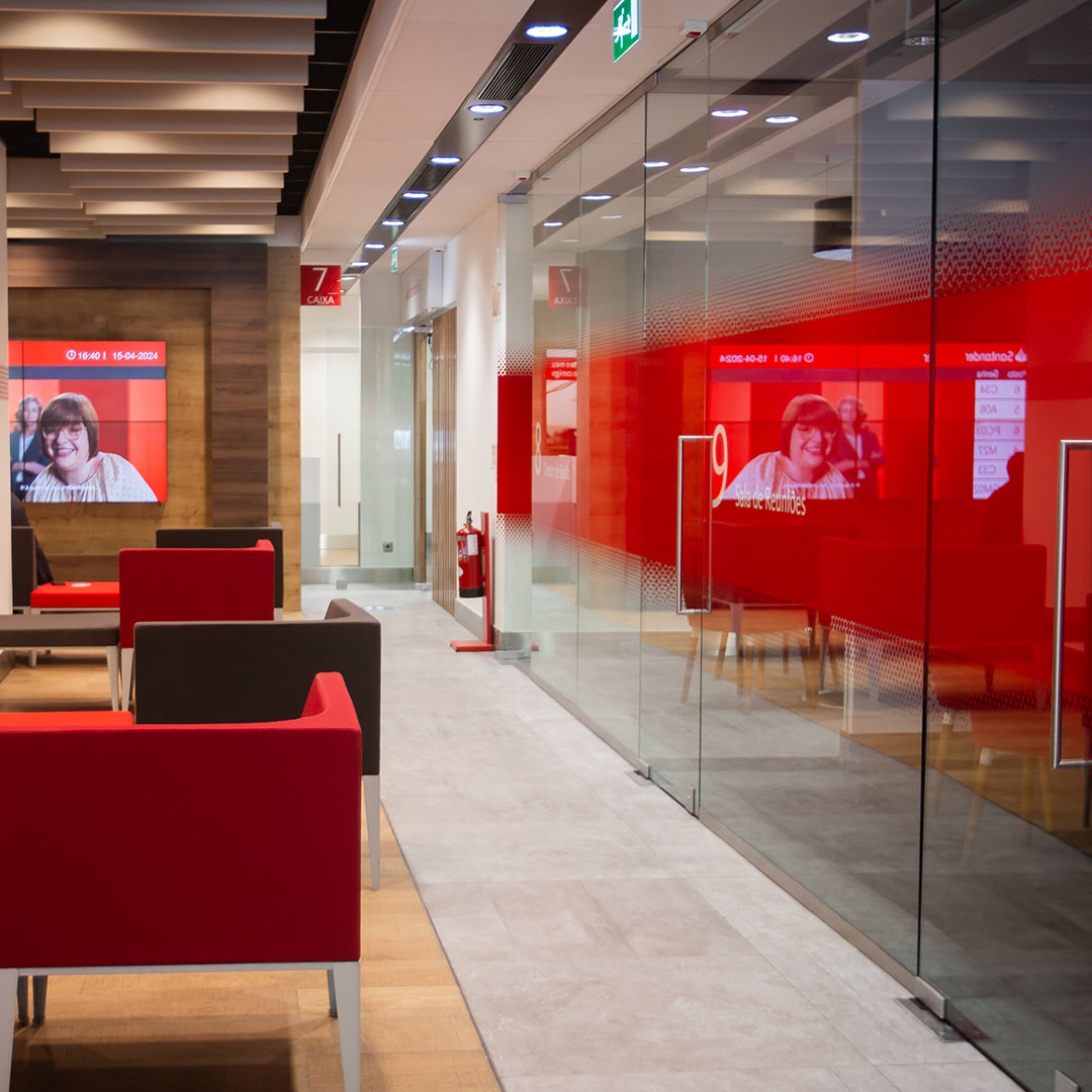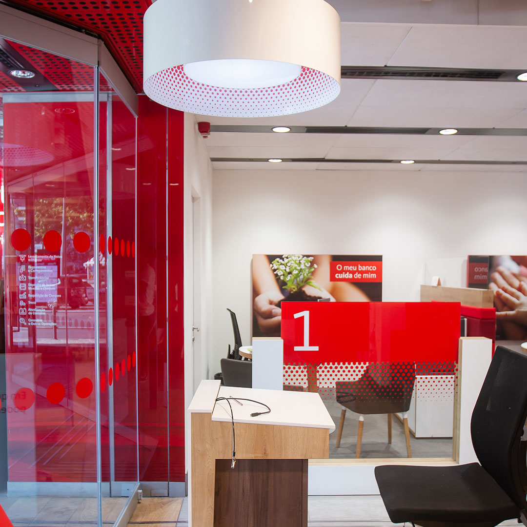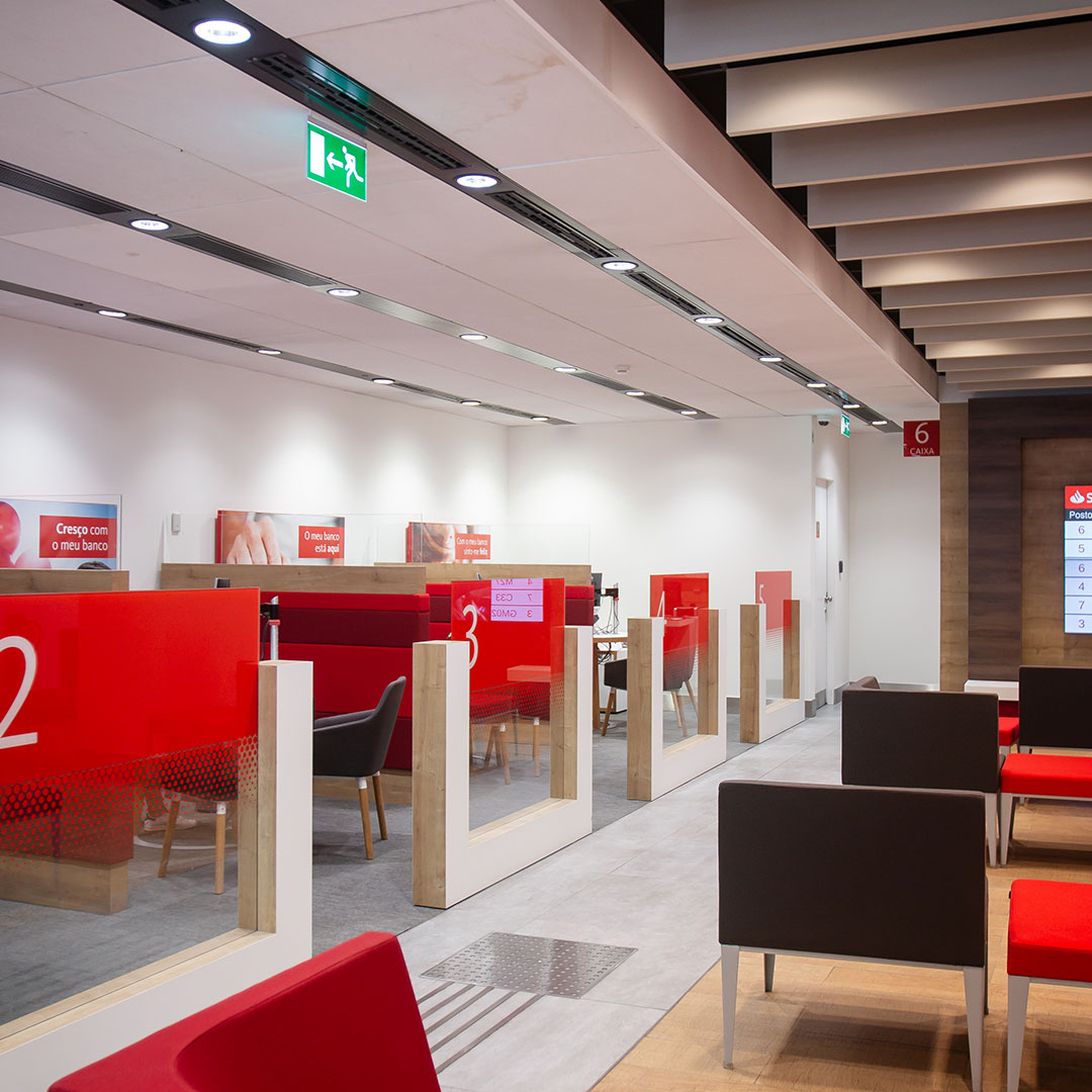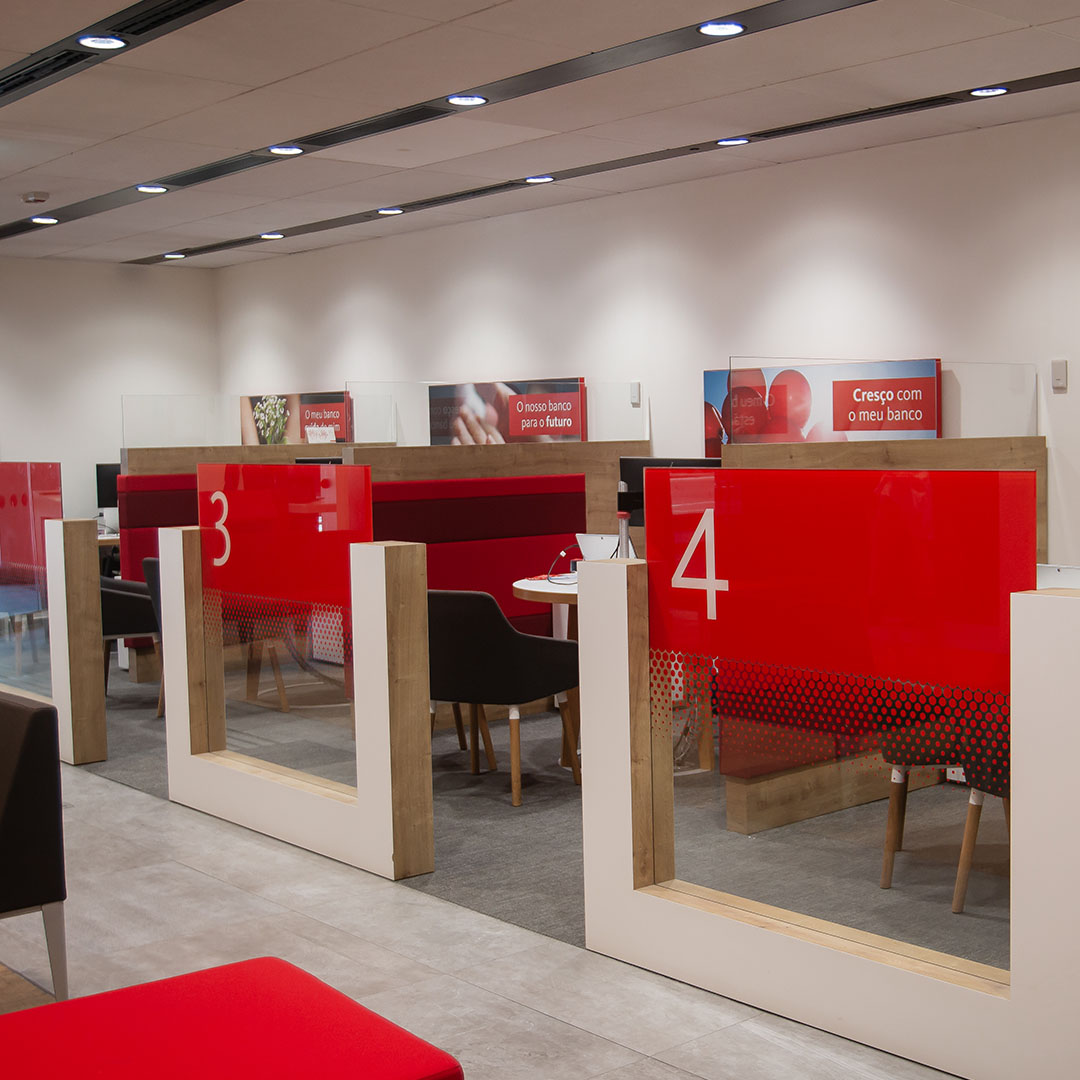 O Banco Santander confiou à Divimontagem a responsabilidade de realizar várias remodelações interiores nas suas agências, além de projetos de construção de novos bancos de raiz. Ao longo dos anos, já transformámos mais de 250 agências, implementando soluções inovadoras que incluem a colocação de postos de trabalho eficientes e modernos, bem como a criação de ATMs que cumprem as mais recentes normas de segurança e acessibilidade. Este cliente acompanhou-nos ao longo de todos os anos de existência, permitindo-nos desenvolver uma habilidade distinta na execução de adaptações rápidas e eficazes, assegurando a continuidade operacional sem interrupções significativas e atendendo às suas necessidades emergentes.